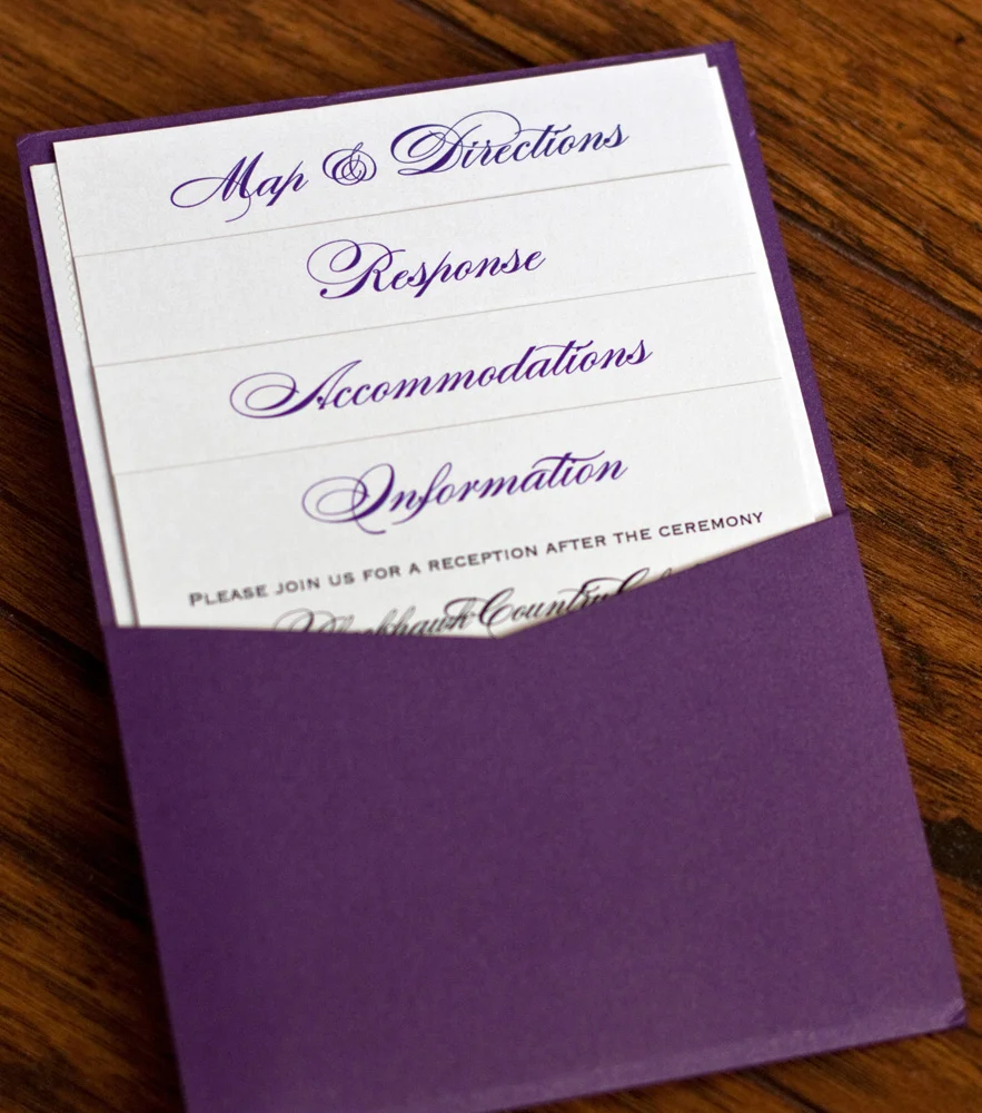 It was actually quite a challenge to find envelopes that would fit an rsvp card that was sized to fit in the pocket.