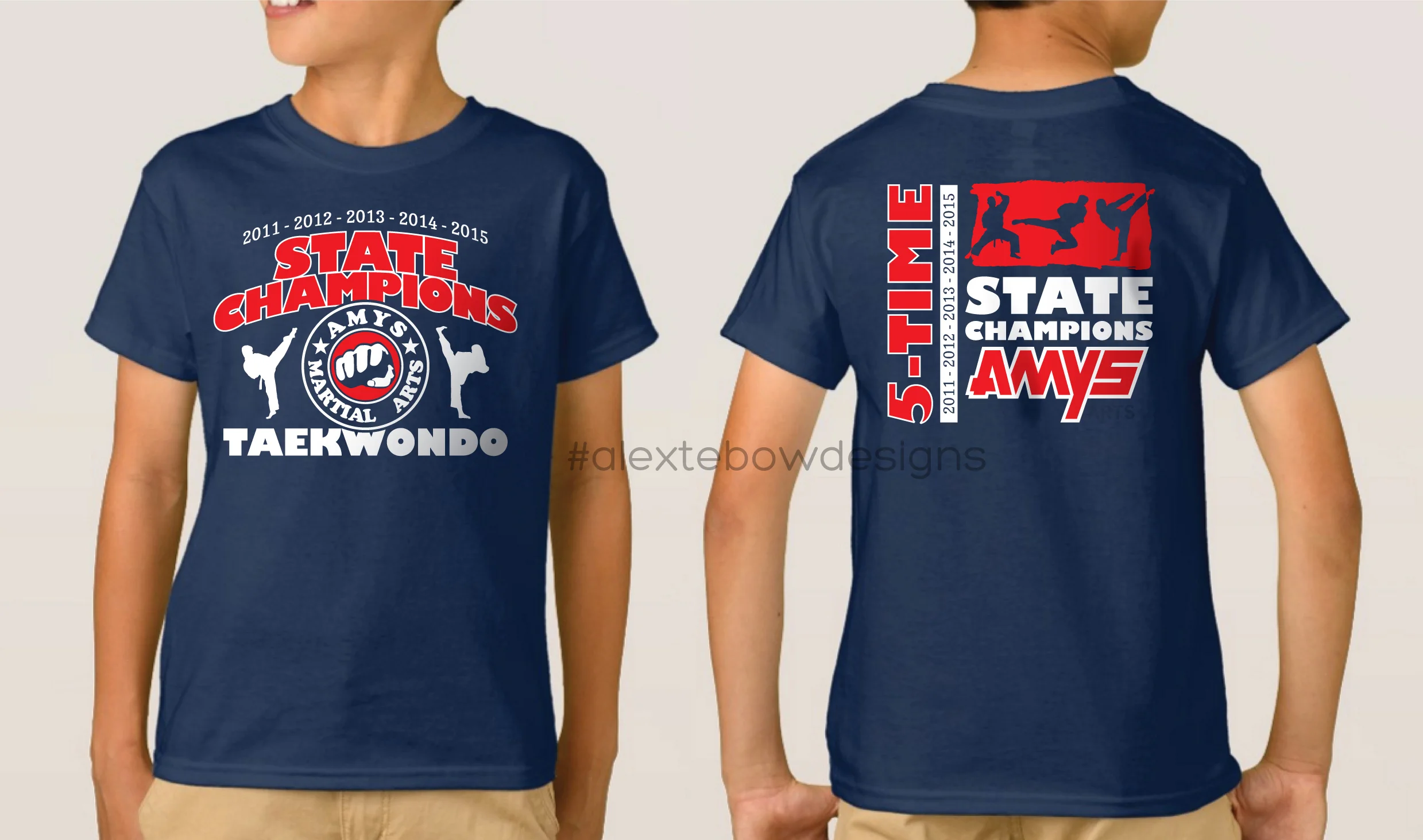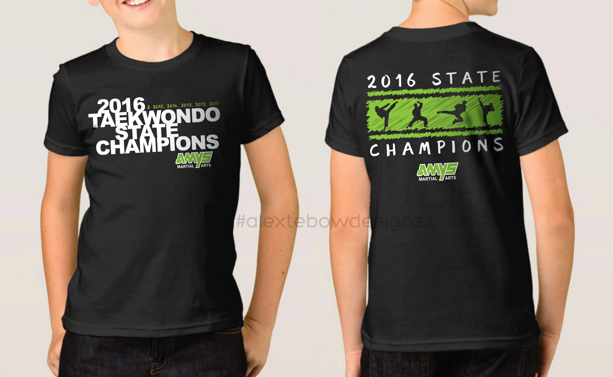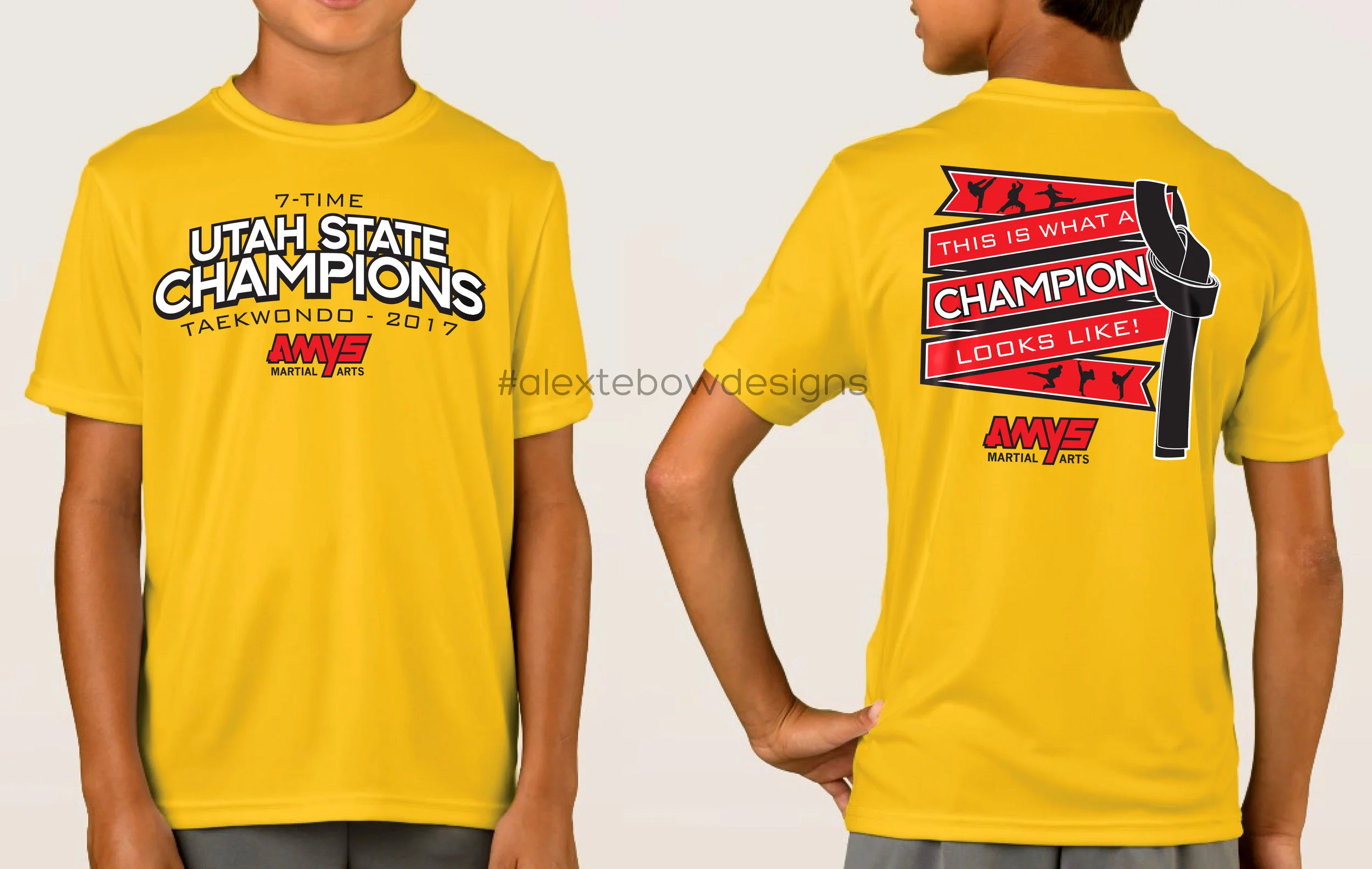 Both of my boys are taekwondo students at AMYS Martial Arts in Utah and we LOVE it (someday I just might become a student). I do some design work for them, including designing t-shirts when needed. 2017 is the 7th year in a row they've been Utah State Champions and I've had the privilege of creating t-shirts for the last few years to celebrate.