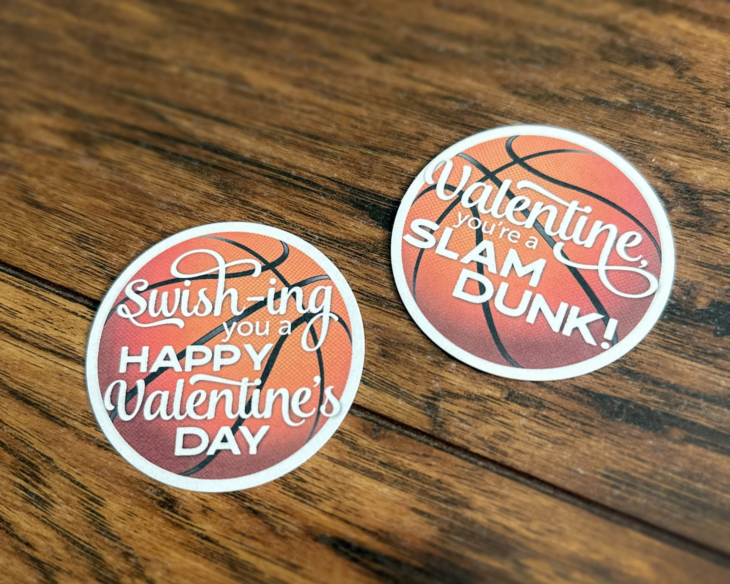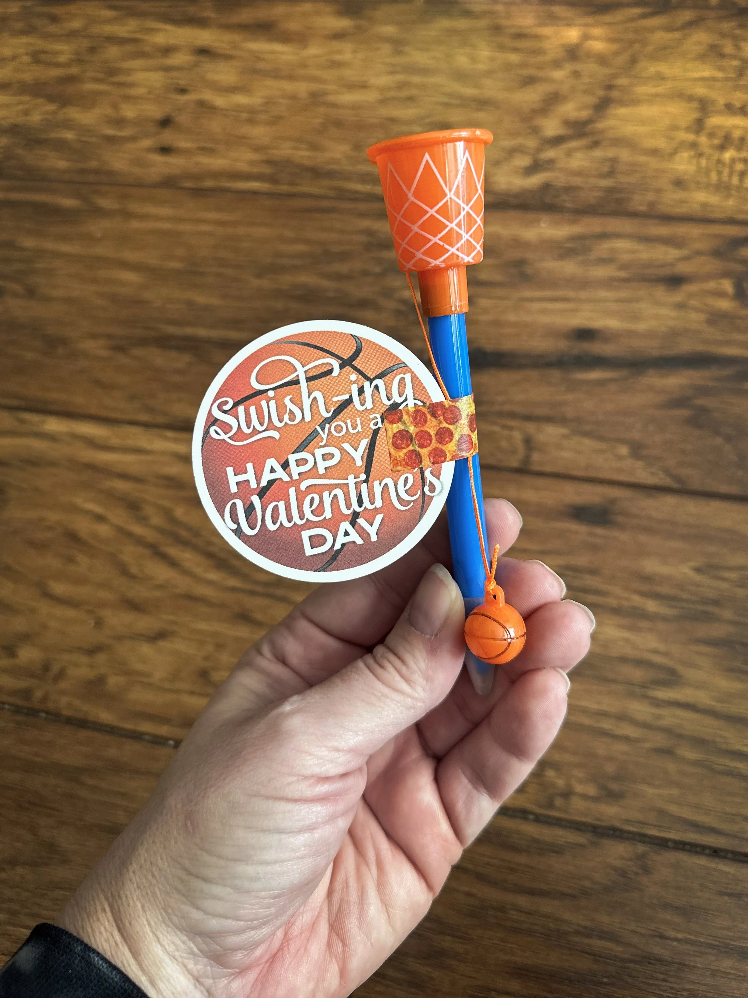 Valentine’s Day arrived this year and my youngest son requested basketball-themed valentines for his school party. For the last few years we have strived to send non-food, non-candy, and allergen-free valentines for school parties, in support of my nephew who has a lot of food allergies, and this year was no exception.