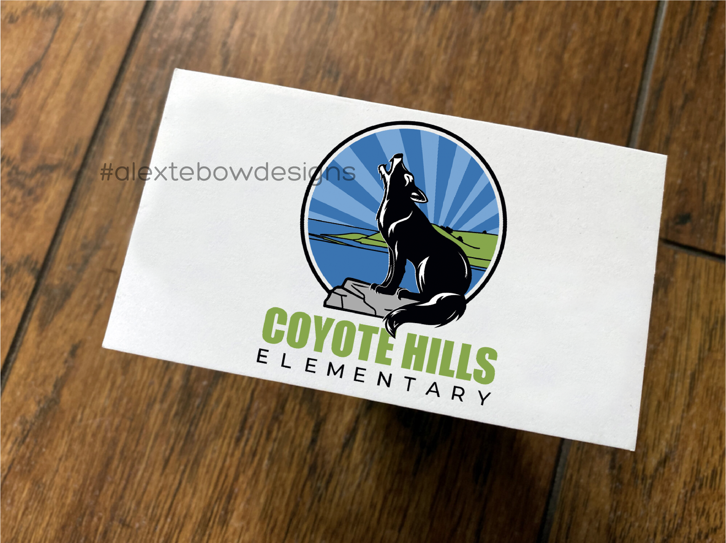 They had students submit hand-drawn concepts for the logo and the school committee (made up of teachers and the principal) chose one as a conceptual starting-off point for me. That drawing involved a howling coyote with beams of light in a circle around it. The landscape I created in the background is a portion of Coyote Hills Regional Park that the school is named after. I grew up hiking in those hills and going there on field trips!